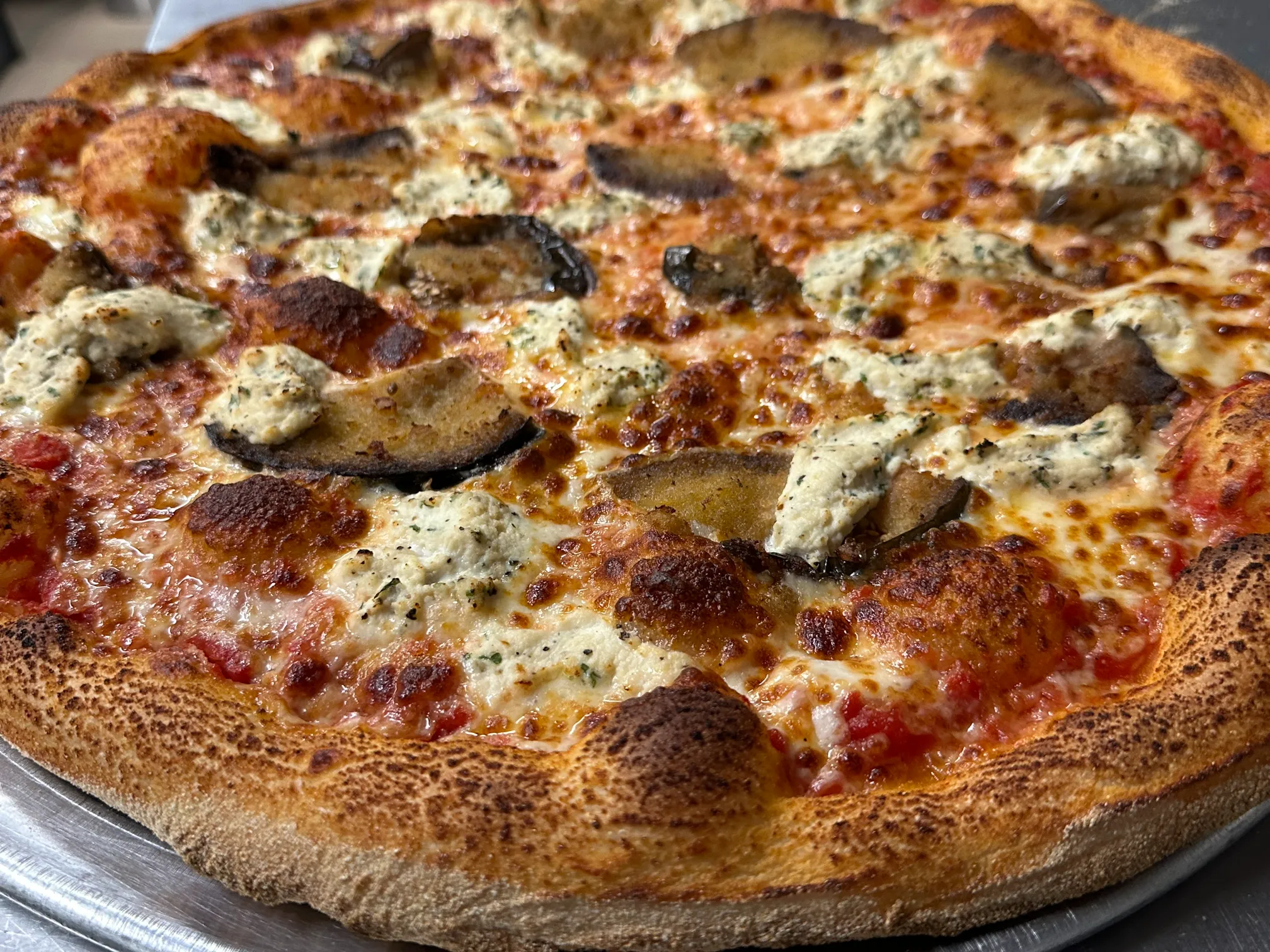 Cheese Pizza with Eggplant and Seasoned Ricotta Cheese